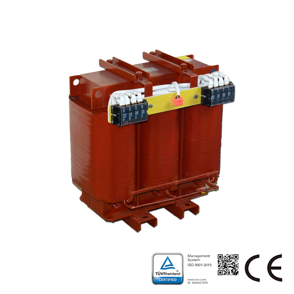 Materiali: Nucleo magnetico in lamierino di acciaio al silicio di alta qualità, che garantisce basse perdite a vuoto e ridotta rumorosità. Per le capacità ridotte, conduttore smaltato a sezione rettangolare; per le capacità elevate, avvolgimenti in foglio di alluminio. La produzione prevede impregnazione sottovuoto a pressione, conferendo al trasformatore elevata resistenza meccanica e protezione dall’umidità.