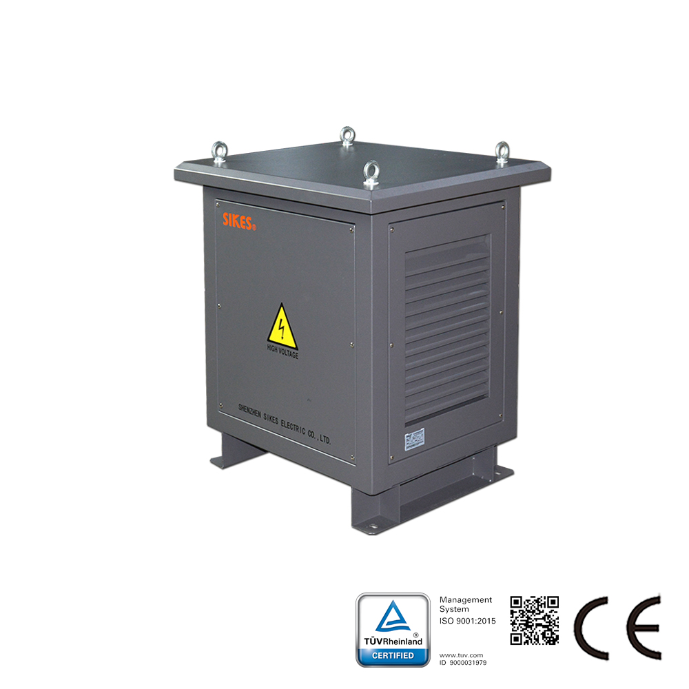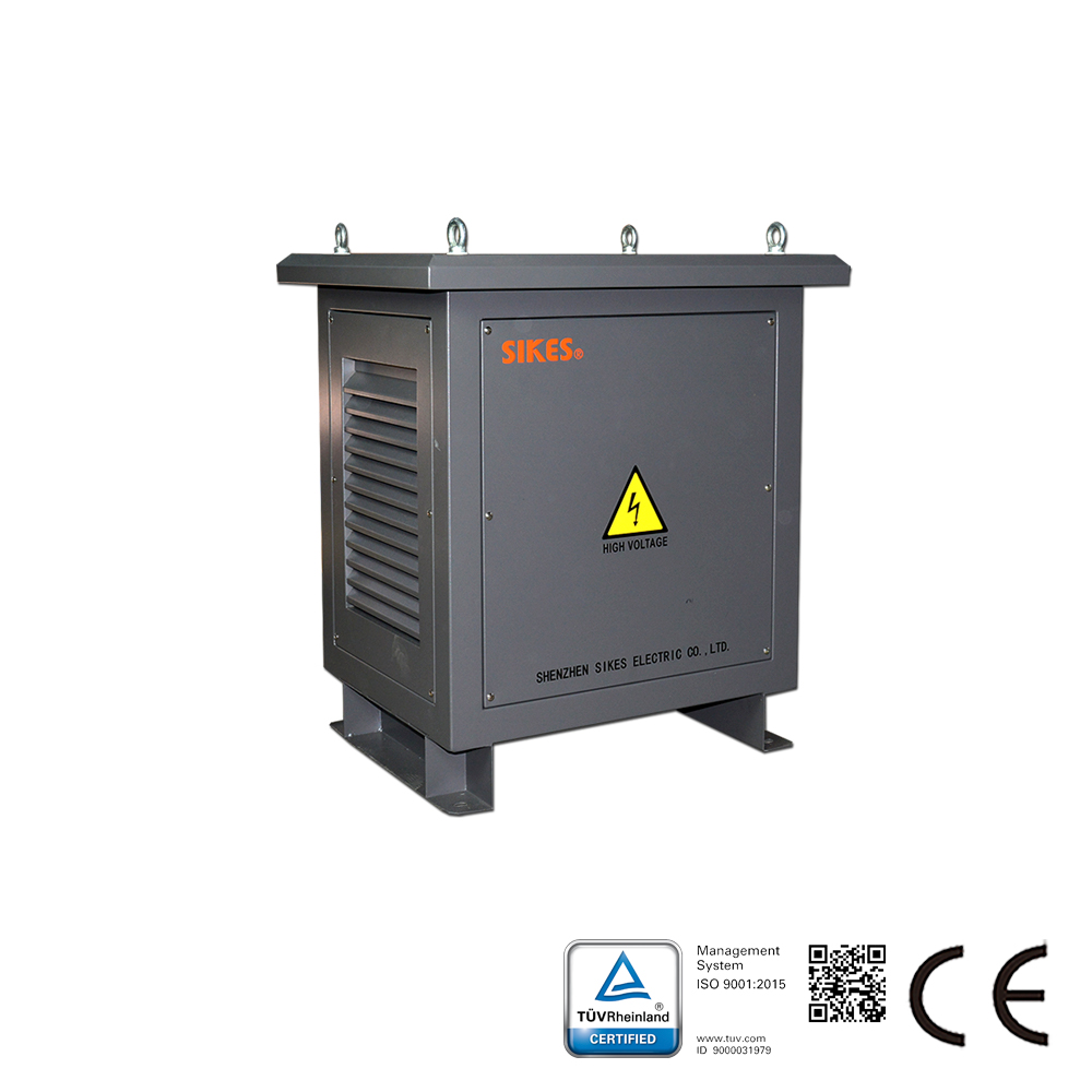 Descrizione del trasformatore di isolamento di potenza: Il trasformatore di isolamento SGGF è utilizzato per risolvere i problemi della rete elettrica causati dalla generazione di energia fotovoltaica, come armoniche, flicker, polarizzazione magnetica in continua e sovratensioni. I trasformatori sono generalmente impiegati tra la rete elettrica e l’inverter connesso alla rete, consentendo di isolare l’inverter e reimmettere l’energia nella rete.