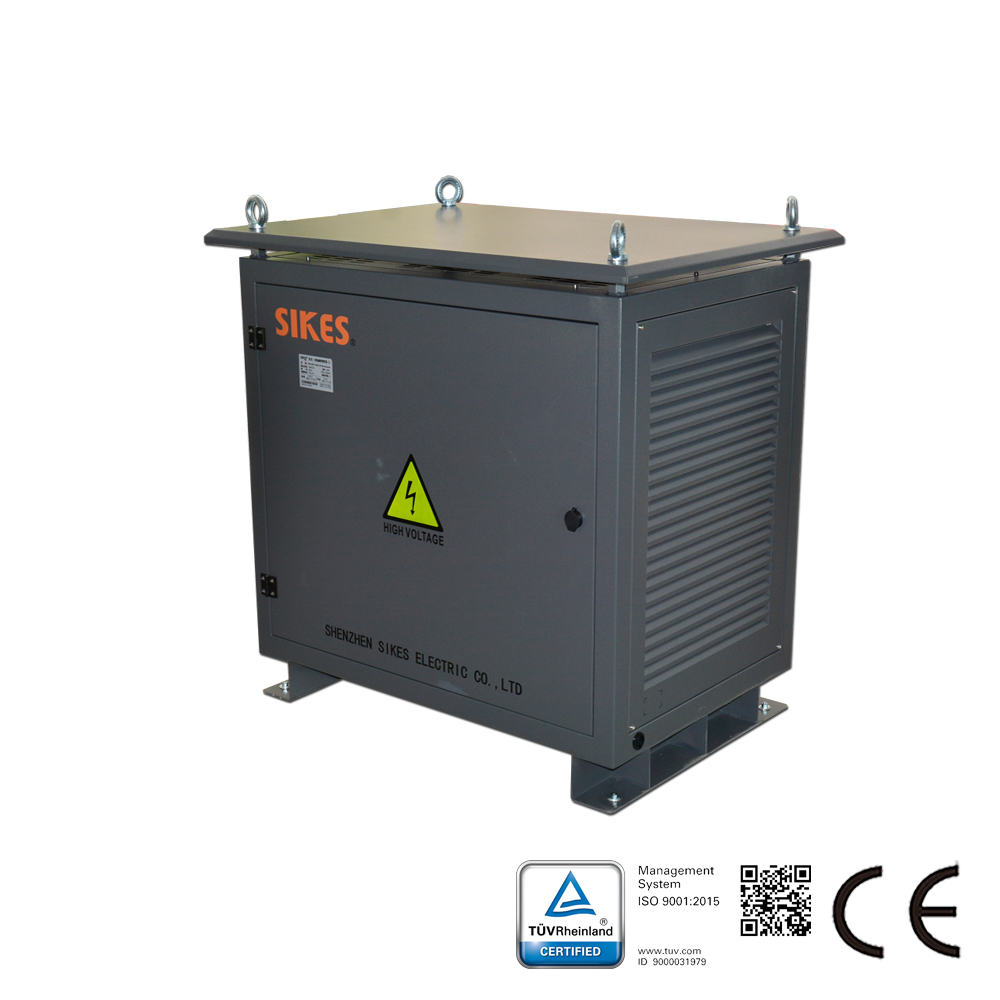 Descrizione del trasformatore di isolamento di potenza: Il trasformatore di isolamento SGGF è utilizzato per risolvere i problemi della rete elettrica causati dalla generazione di energia fotovoltaica, come armoniche, flicker, polarizzazione magnetica in continua e sovratensioni. I trasformatori sono generalmente impiegati tra la rete elettrica e l’inverter connesso alla rete, consentendo di isolare l’inverter e reimmettere l’energia nella rete.